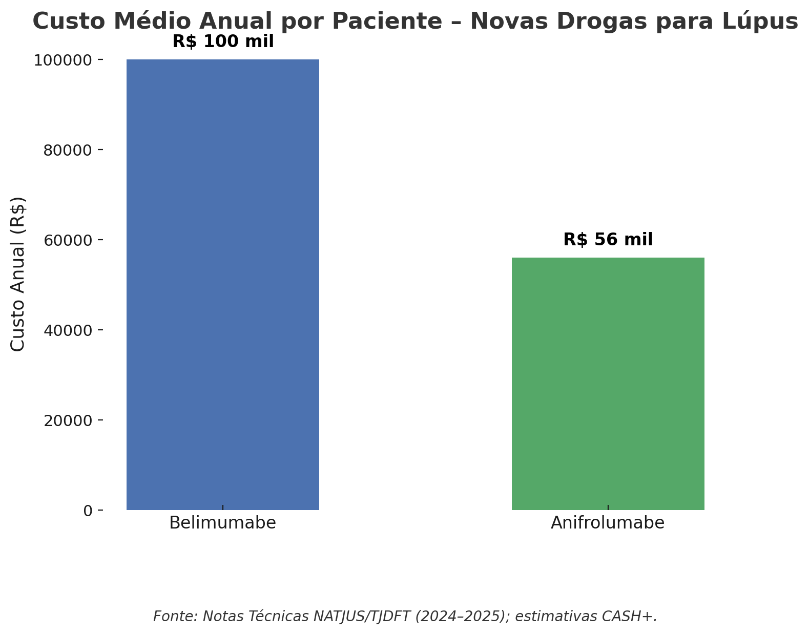 Anifrolumabe: custo em torno de R$ 56 mil por paciente ao ano.